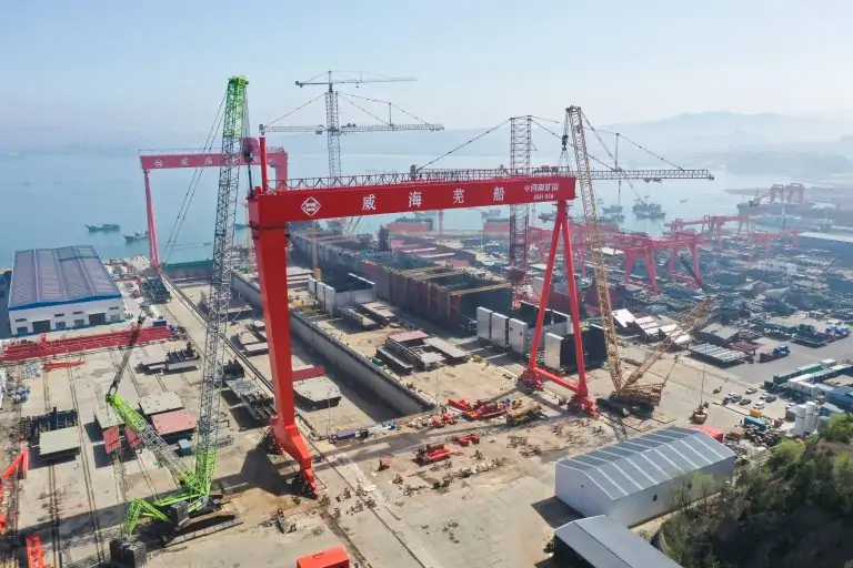 The most common in shipyards is the giant gantry cranes (Goliath cranes), this heavy gantry crane span can reach dozens of meters, lifting capacity of up to several hundred tons, specially designed for lifting hull segments, deck modules and large equipment.