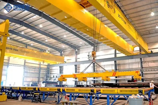 Overhead bridge cranes are commonly used in workshops, and are divided into single girder and double girder models, which are suspended from the top of the plant and run on rails.