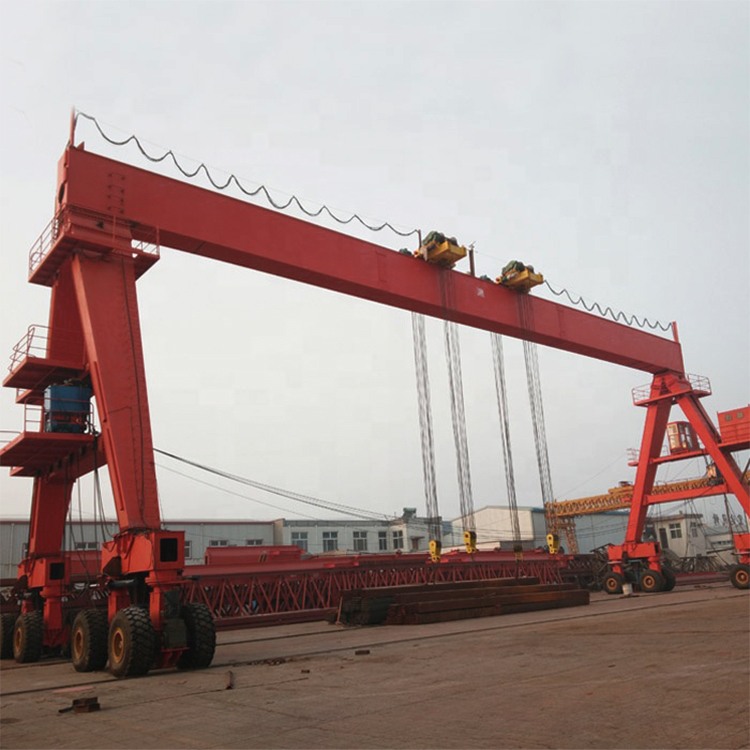 Rubber Tyred Gantry Crane, or RTG Crane for short, is a kind of mobile gantry crane with rubber tires as the traveling device. Its core structure is similar to that of an ordinary gantry crane, with main girder, outriggers, hoisting mechanism and trolley system, but the biggest difference is that it doesn’t need to rely on fixed rails, and can move freely on the level ground.