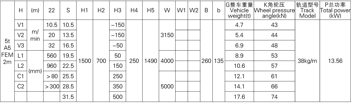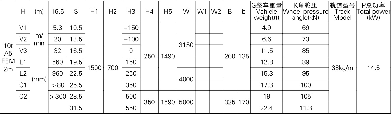 | Trolley Travel Speed | 5 – 25 | m/min | Stepless speed regulation |