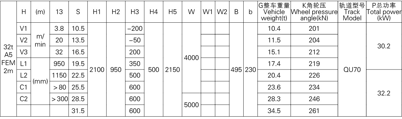 | Rated Lifting Capacity | 1+1 – 32+32 | t | Double trolley combination, customizable |